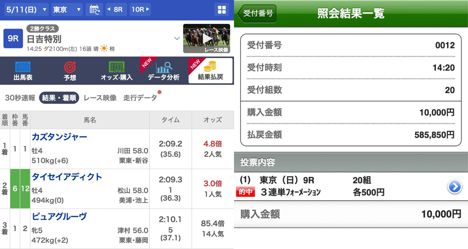ピュアグルーヴを押さえてたのは本当にさすが。まあ、このくらいの払い戻しは珍しくないし、この調子でどんどん行く。
